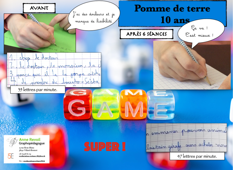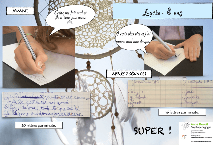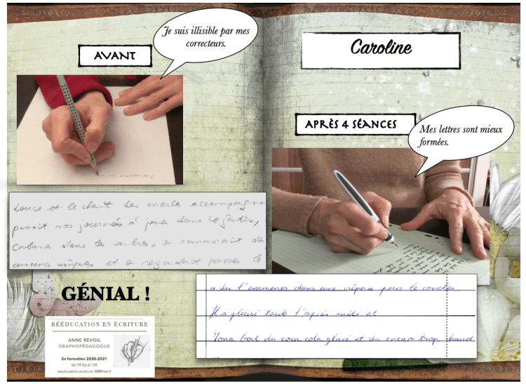 À la dernière séance , un diplôme de fin de rééducation est remis à l’élève. On voit les progrès réalisés.